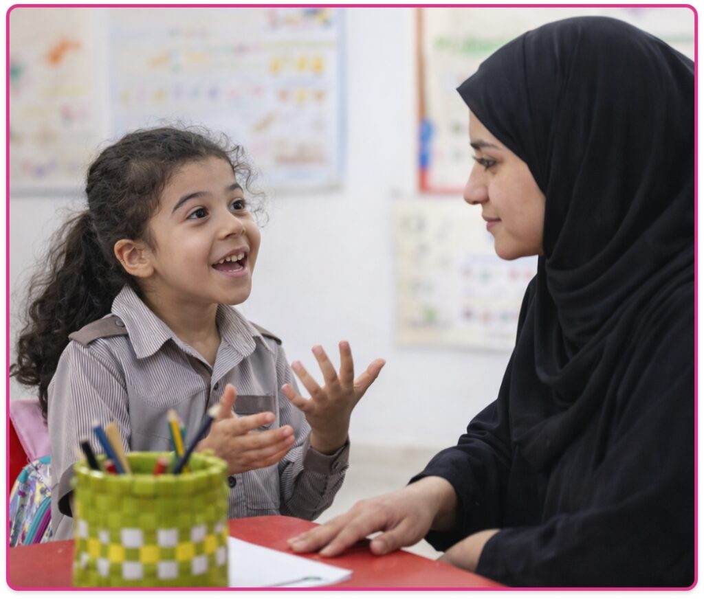 صمتت المعلمة لحظة تُرتّب الجواب. لكن الطفلة لم تنتظرها؛ أجابت بنفسها: